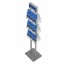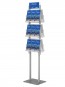 Dwustronny, składany prezenter na ulotki, foldery. Stojak posiada składany statyw z anodowanego aluminium oraz sześć kieszonek z plexi, formatu A4 w poziomie, z możliwością podziału na ulotki A5 i Dl. Możliwość złożenia sprawia, iż jest idealny do transportu.