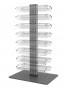 Obrotowy stojak na na lakiery do paznokci wykonany z anodowanego aluminium i plexi.