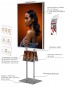 Składany stabilny, wolno stojący prezenter który umożliwia jednoczesną ekspozycję plakatu wraz z ulotkami. Stojak składa się z wolno stojacej nogi do której przymocowane są, ramka aluminiowa w wymiarze B1 ( możliwy inny wymiar) oraz kieszeń z plexi formatu A4 poziomo (możliwe inne formaty).