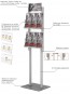 Stabilny, składany prezenter na ulotki, foldery. Stojak posiada składany statyw z anodowanego aluminium oraz dwie kieszonki z plexi, formatu A4 w poziomie, z możliwością podziału na ulotki A5 i Dl. Możliwość złożenia sprawia, iż jest idealny do transportu.