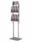 Stojak posiada składany statyw z anodowanego aluminium oraz dwie kieszonki z plexi,
