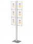 Stojak informacyjny wyposażony w ramki na plakat formatów A4, pozwala na eksponowanie większych grafik. Stojak informacyjny na 6 plakatów A4