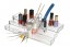 Elegancki i funkcjonalny stojaczek na lakiery, który posiada miejsce na różnego rodzaju akcesoria do manicuru. Przydatny zarówno w domu jak i salonie kosmetycznym.