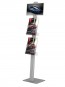 Stabilny, wolnostojący, prezenter na ulotki, foldery. Dwie ulotki A4 (możliwe inne formaty ) widoczne w 100%. Rama z anodowanego aluminium, kieszonki z plexi. . Piozioma tabliczka A4 nad ulotkami do umieszczenia logo lub innej informacji na kartce formatu A4. Jednostronny (możliwa wersja dwustronna - ulotki i logo powtórzone z drugiej strony. Stojak posiada możliwość zamontowania w nim na stałe po jednym egzemplarza ulotki. Takie ulotki (przytrzymane sztywną folią) ułatwią klientom orientację, a obsłudze uzupełnianie ulotek.