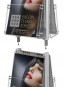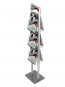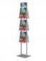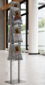 Stabilny, wolnostojący, prezenter na ulotki, foldery w wersji dwustronnej. Sześć ulotek A4 (możliwe inne formaty ) widocznych w 100%. Rama z anodowanego aluminium, kieszonki z plexi. Piozioma tabliczka DL nad ulotkami do umieszczenia logo lub innej informacji na kartce formatu DL. Stojak posiada możliwość zamontowania w nim na stałe po jednym egzemplarzu ulotki. Takie ulotki (przytrzymane sztywną folią) ułatwią klientom orientację, a obsłudze uzupełnianie ulotek.