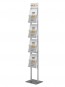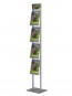Stabilny, wolnostojący, prezenter na ulotki, foldery. Cztery ulotki A4 (możliwe inne formaty ) widoczne w 100%. Rama z anodowanego aluminium, kieszonki z plexi. . Pozioma tabliczka DL nad ulotkami do umieszczenia logo lub innej informacji na kartce formatu DL. Jednostronny (możliwa wersja dwustronna - ulotki i logo powtórzone z drugiej strony. Stojak posiada możliwość zamontowania w nim na stałe po jednym egzemplarza ulotki. Takie ulotki (przytrzymane sztywną folią) ułatwią klientom orientację, a obsłudze uzupełnianie ulotek.