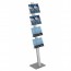 Stabilny, prezenter na ulotki, foldery. Stojak posiada statyw z anodowanego aluminium oraz cztery kieszonki z plexi, formatu A4 w poziomie, z możliwością podziału na ulotki A5 i Dl.